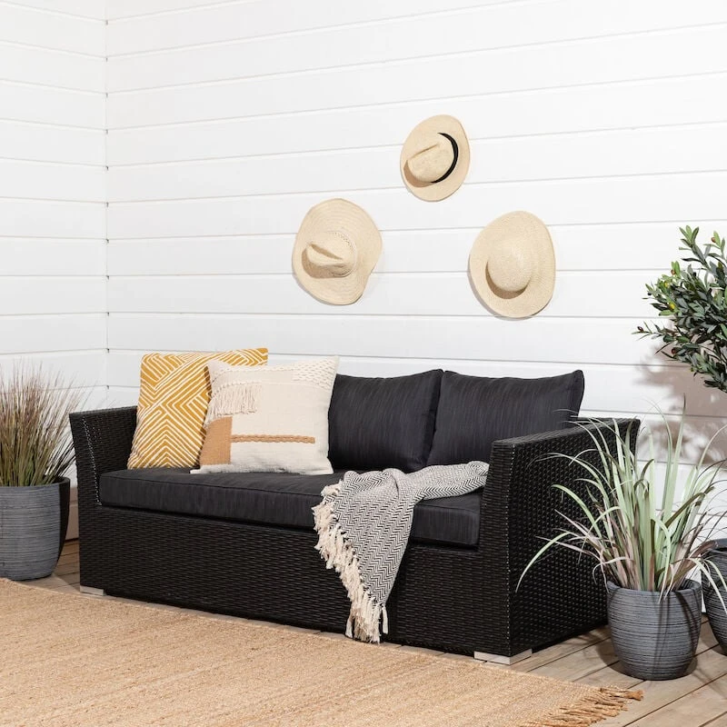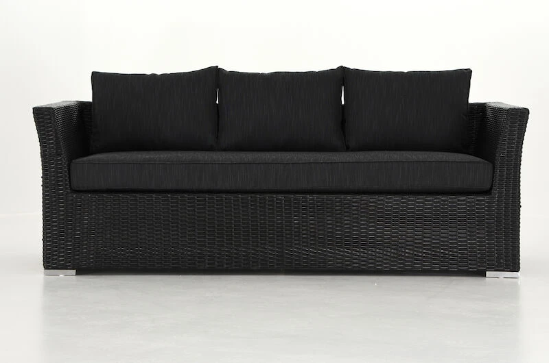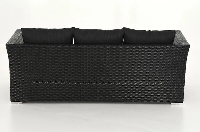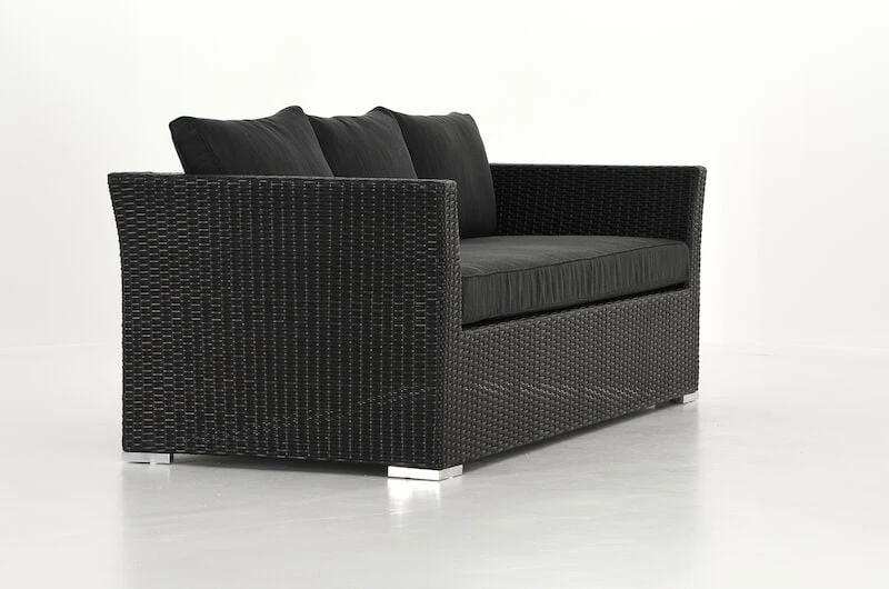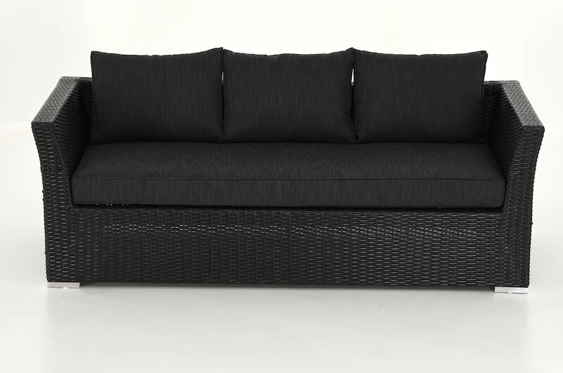 Vanamo sarjaan kuuluva 3-istuttava tyylikäs sohva. Osta lisäksi sopiva sohvapöytä ja vaikka nojatuolit niin saat itsellesi sopivan ryhmän pihallesi. Selkätyynyn korkeus on 35 cm. Istuinasento on rento ja mukana tulevat puolipehmeät pehmusteet saavat oleilusta todella mukavan.