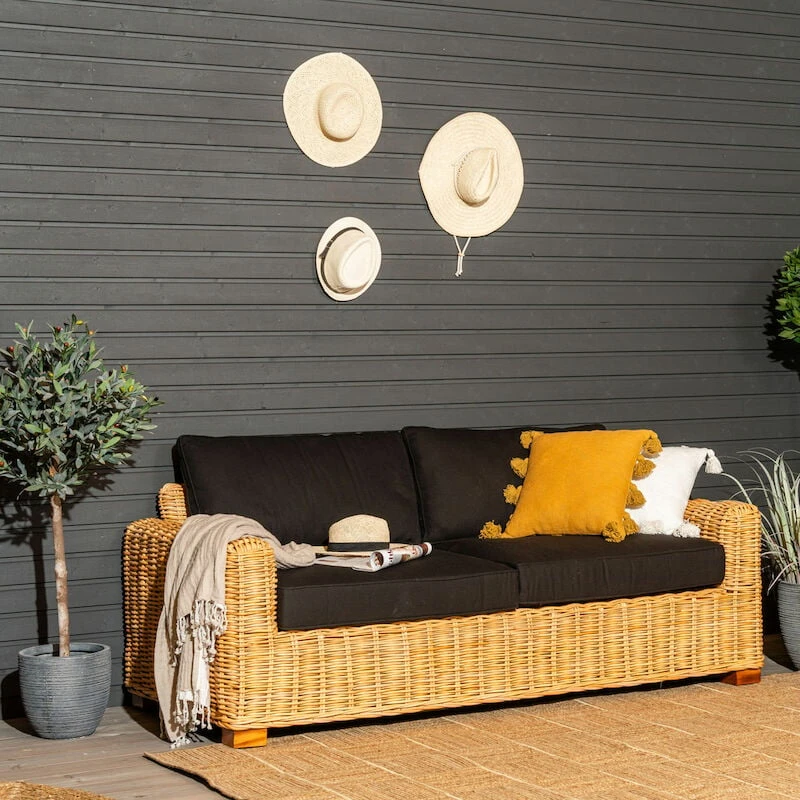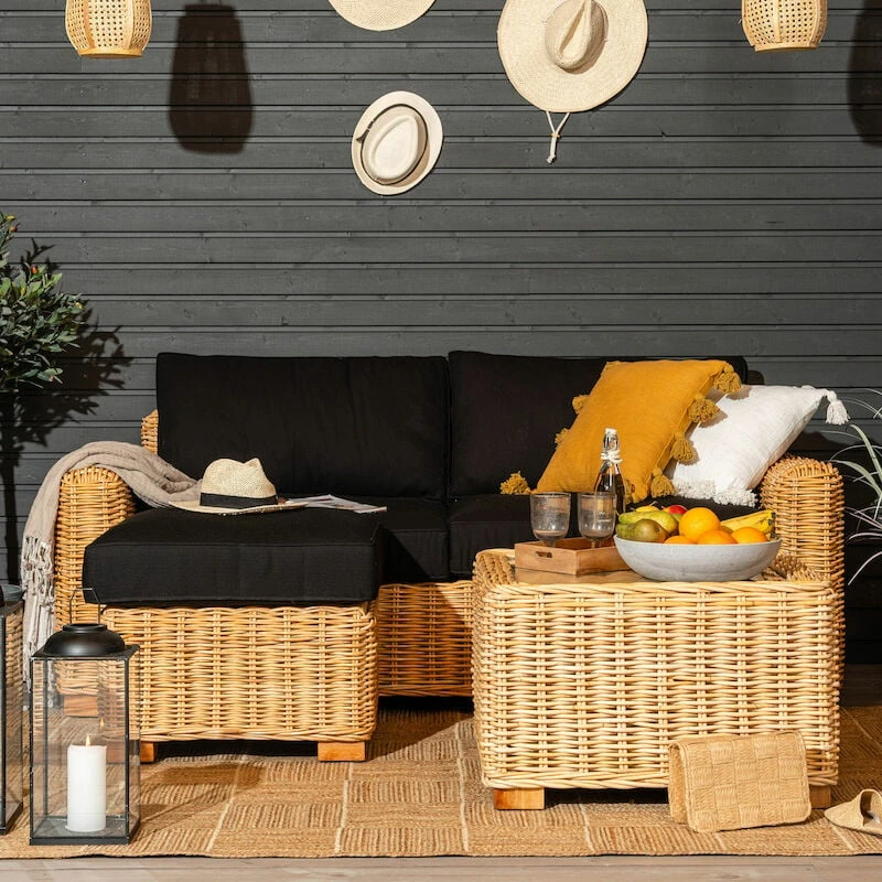 Aitoa, maanläheistä tunnelmaa tuo ihastuttava Vorona 3-istuttava kuburottinkinen sohva. Sohva on valmistettu luonnonvärisestä, aidosta rottingista ja puusta. Rottinki on luonnonmateriaali, joten se on hyvä sijoittaa katettuun tai lasitettuun tilaan. Istuinmukavuuden kruunaa muhkeat, mustat pehmusteet. Pehmusteet on verhoiltu polyesteri kankaalla. Pehmusteiden päälliset ovat irroitettavissa, mutta emme suosittele vesipesua kutistumisen vuoksi. Sohva toimitetaan valmiiksi kasattuna.